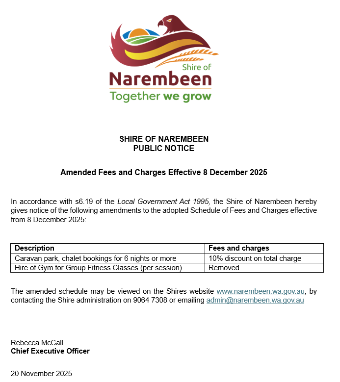 Public Notice - Amended Fees and Charges